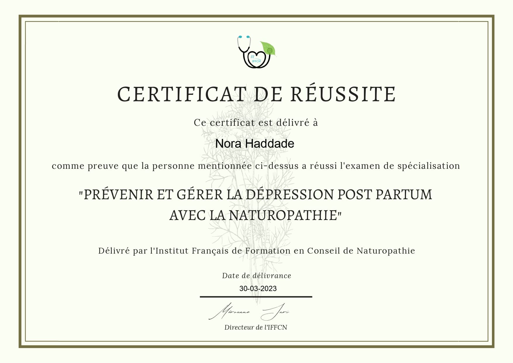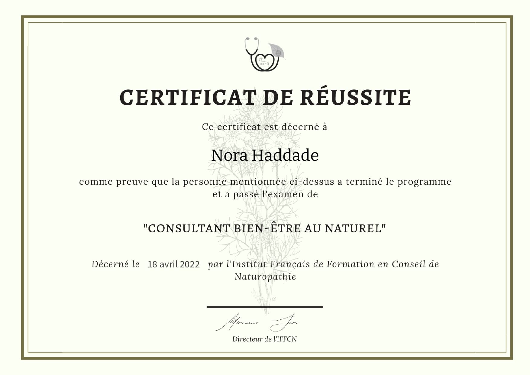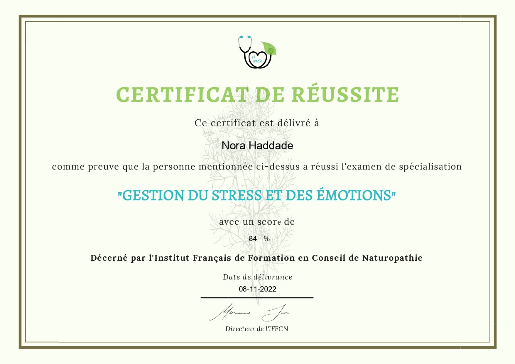 En plus de ma formation académique, j’ai également suivi des formations spécialisées en naturopathie et en coaching, obtenant des certifications en tant que coach bien être, conseillère en naturopathie et naturopathe. J’ai obtenu mes certifications en naturopathie et en coaching à l’IFFCN, un institut français où j’ai acquis une solide expertise dans des domaines spécifiques.